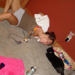 Пьяная девушка в одних чулках и без трусов широко раздвинув свои ноги полулежа на диване потягивает пиво. Да и почему у почти всех пьяных девушек такая тяга раздеться и показать свои гениталии, пары а