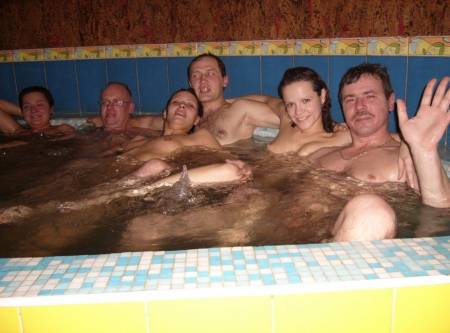 Описание: Эротическое фото с бани, голые парни и девушки безмятежно отдыхают в бане, купаясь в бассейне они не сколько не стесняются своих голых тел, чувствуется что этот отдых закончиться групповым сексом. Смотреть групповая эротика с бани