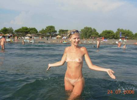 Описание: Нудистский пляж на черном море, вокруг все голые и довольно миленькая женщина с белокурыми волосами, маленькими сиськами заходит в море чтоб искупаться на заднем плане видны также голые мужские попы. В общем лето, море и нудисты