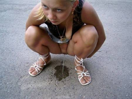 Описание: Молодая писюха после долгой прогулки по городу не дотерпела до туалета, приподняв юбку и стянув трусики она присела прямо на асфальт и вот струя мочи вырывается из ее письки прямо на асфальт, а девушка с умным видом типа это не я продолжает писать.