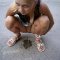 Описание: Девчонка вышла в места лесорубки, приметила хороший пенек, сев на него и широко раздвинув ножки, писает вниз.