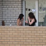 Эротическое фото из жанра подсмотренное, две девчонки вышли на балкон покурить одна из которых абсолютно голая, тут-то их и застал мощный фотообъектив с дома напротив, вывод один не ходите девки курит